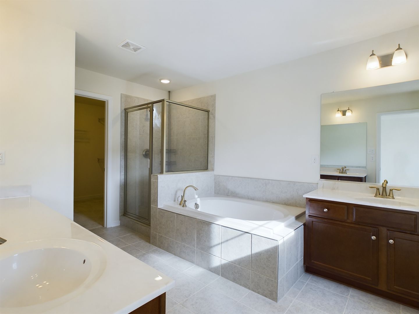 Head upstairs to the landing area with the large Primary bedroom to the right with tons of natural light and tray ceiling, spacious walk-in and oversized en suite bathroom with tiles floors, two vanities and tiled walk-in shower and soaking tub. Back down the hallway offers two additional bedrooms with ample closet space. Full hallway bathroom with shower/tub combo. Laundry closet with washer and dryer to convey.