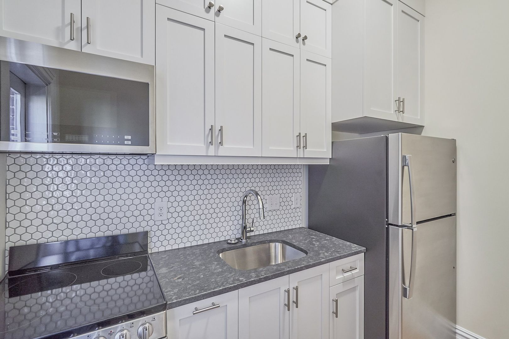 Step inside the fully updated, cozy space with beautiful floors and great natural light. New kitchen with stainless steel appliances, tiled backsplash, plenty of cabinet space and more.