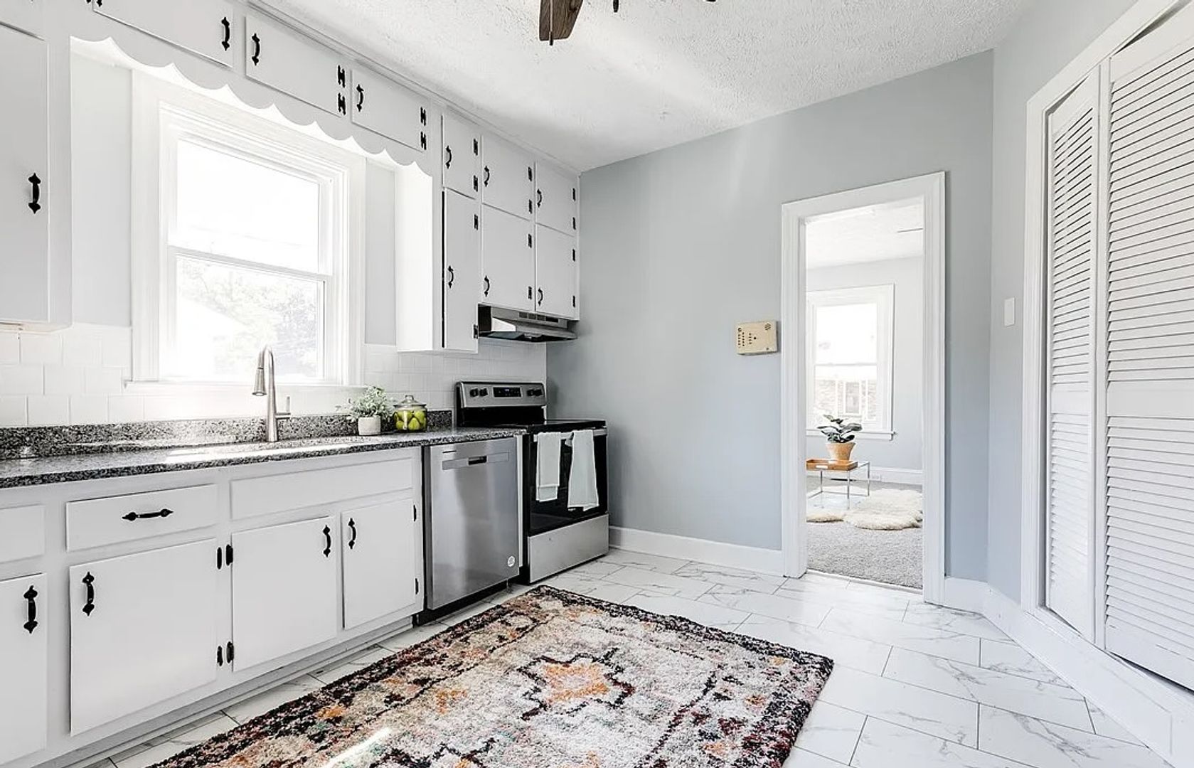 Step inside from the driveway to a cozy living room with tons of natural light. Flow to the renovated kitchen complete with tiled floors, granite countertops, stainless steel appliances and more.