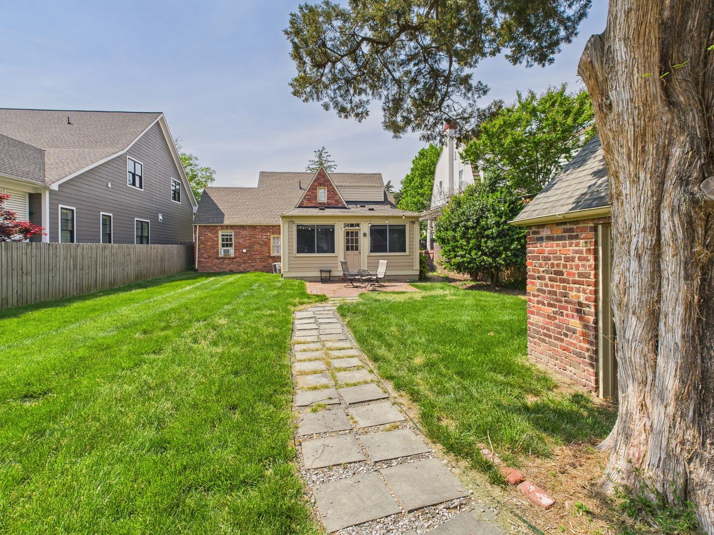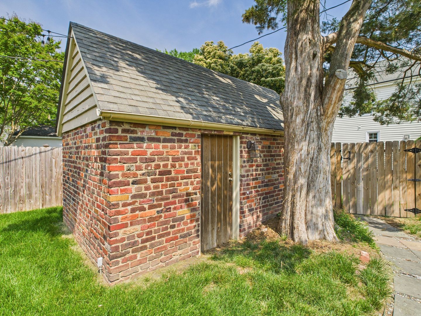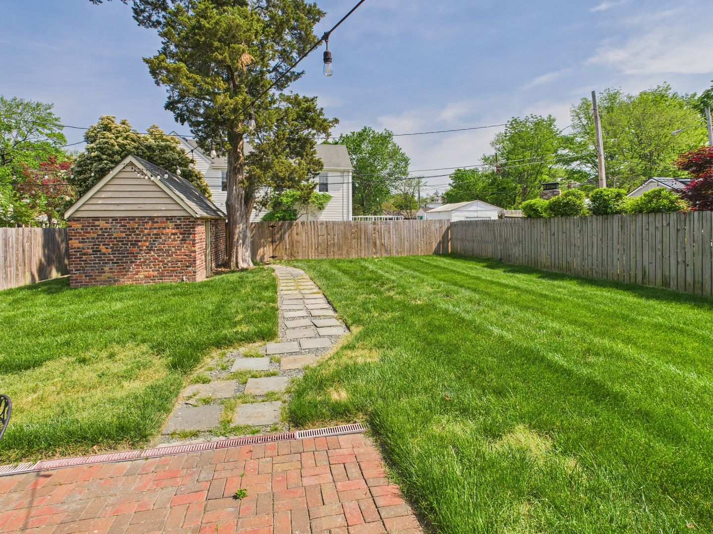Step out back from the Family room to the brick patio overlooking the nice fenced-in rear yard offering an ideal place to relax and unwind at the end of the day or host and entertain with family and friends. All brick storage building to convey as well.