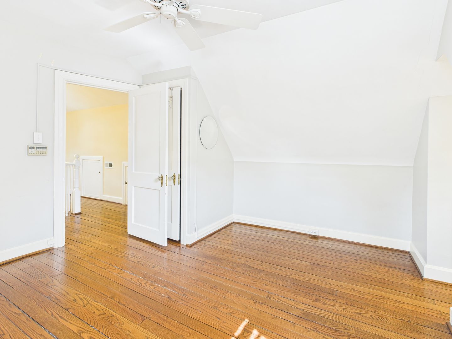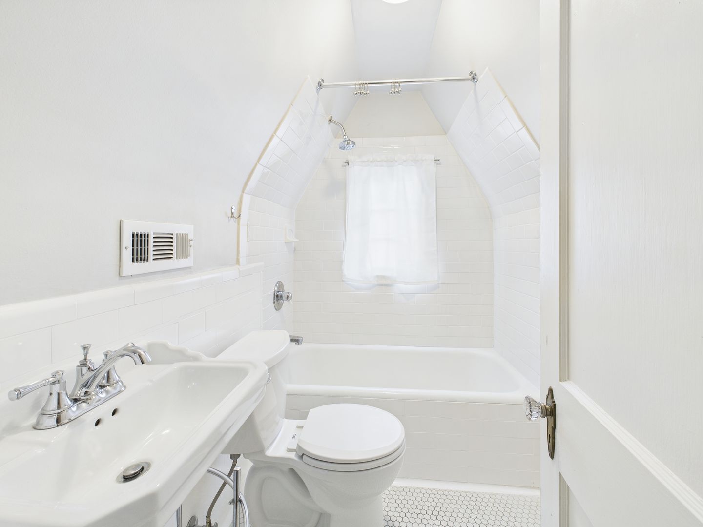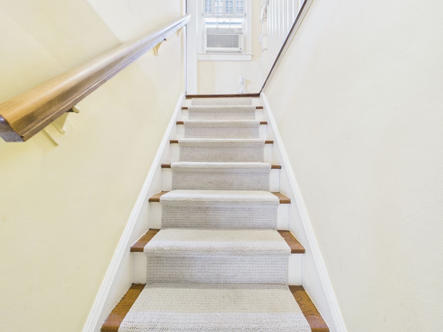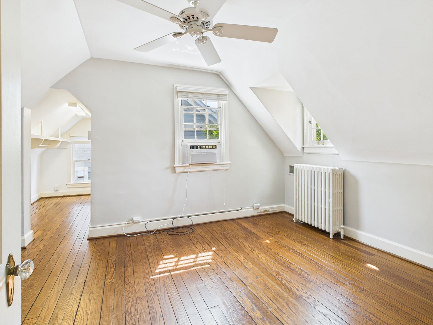 Head upstairs to two additional bedrooms, with a cozy one on the left that would be perfect for a nursery or child and large one on the right with a walk-in closet space. Full hallway bathroom with tiled floors and shower/tub combo along several storage closets complete this level.
