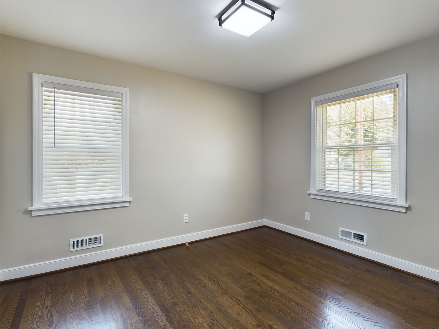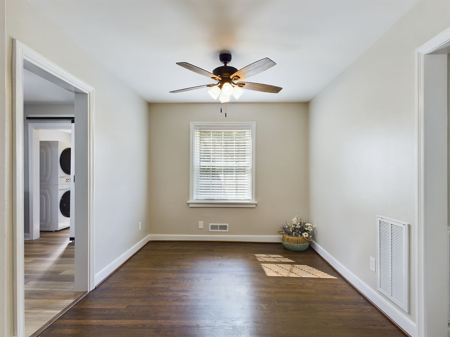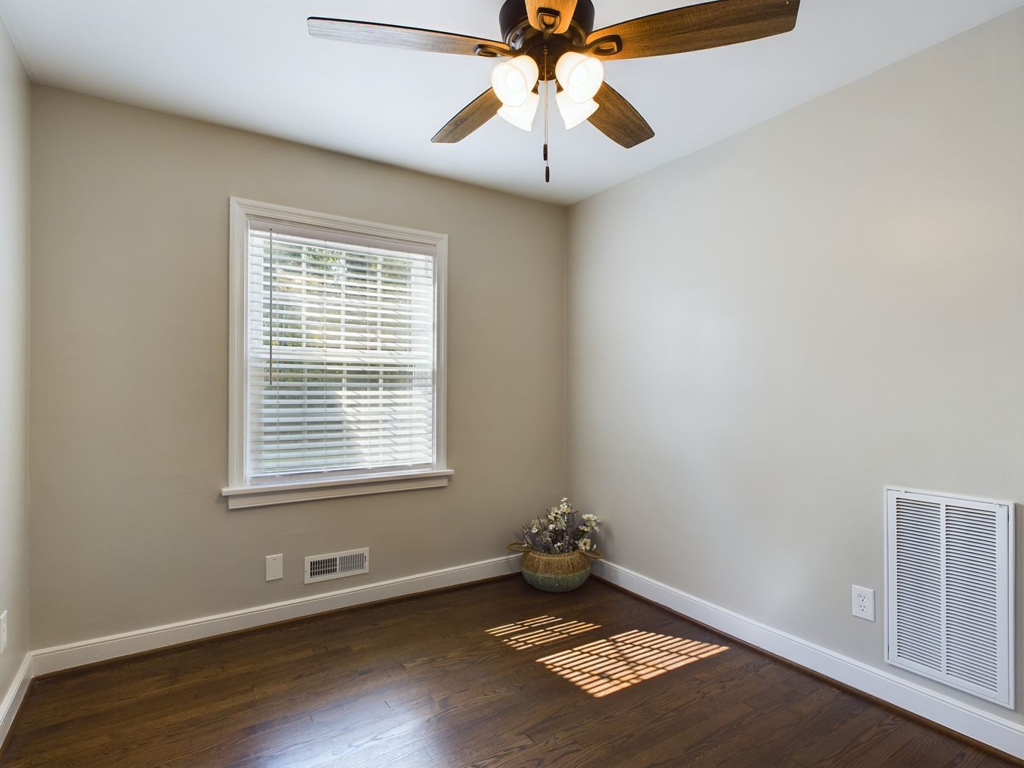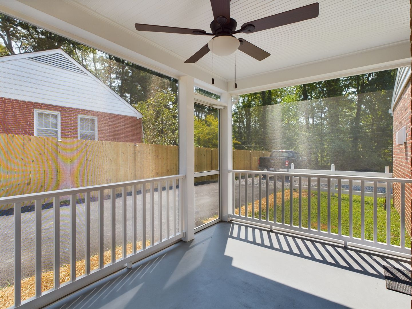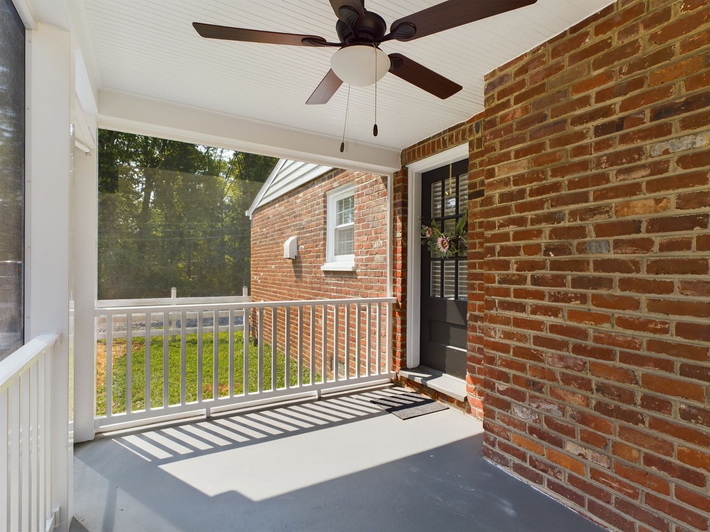 When you approach the home, you will pull into your private driveway with convenient parking at the rear of the home. You will step inside to beautifully REFINISHED ORIGINAL hardwood floors and windows adorned with BRAND NEW custom blinds. As you move through the living room, you have access to your BRAND NEW, custom screened in porch with an outdoor ceiling fan for optimal comfort. Back through the living room is the open and airy dining room which features a large window and great lighting.