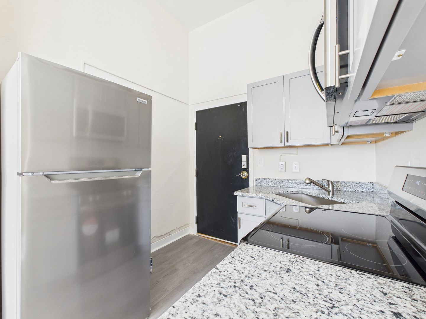 Welcome to your newly upgraded studio apartment, where comfort meets convenience. This thoughtfully designed space features a modern walk-in shower with elegant marble-style tile, perfect for refreshing after a long day. The unit has been freshly painted and upgraded with sleek stainless-steel appliances, making it move-in ready and effortlessly stylish.