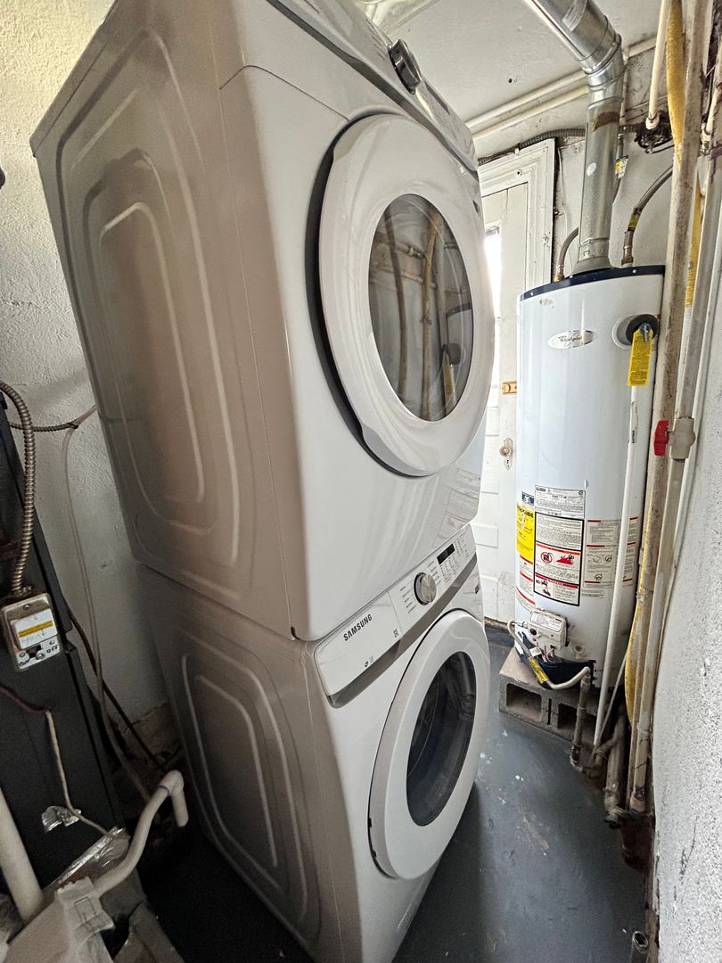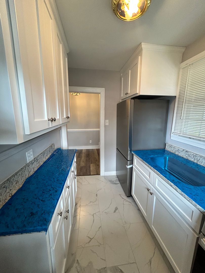 Step inside the front door to your large open concept living area filled with natural light. Continue through the home towards the dining area which flows into an updated kitchen with ample cabinet space, upgraded countertops and stainless appliances. Off the dining room is a laundry area, washer and dryer to convey, with access to the back yard.