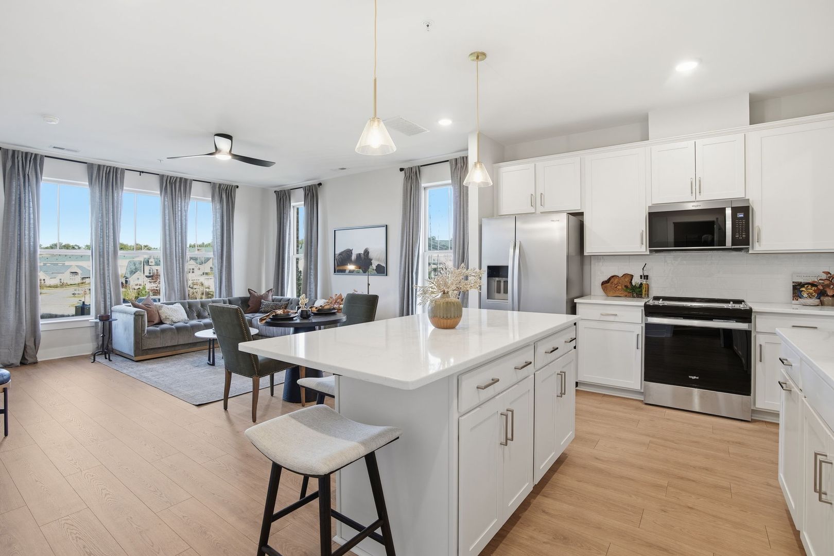 This modern lower-level condo offers a well-designed layout with open living spaces and added bedroom flexibility. The first floor features an open-concept living area and kitchen, creating a seamless flow that is ideal for both everyday living and entertaining.
