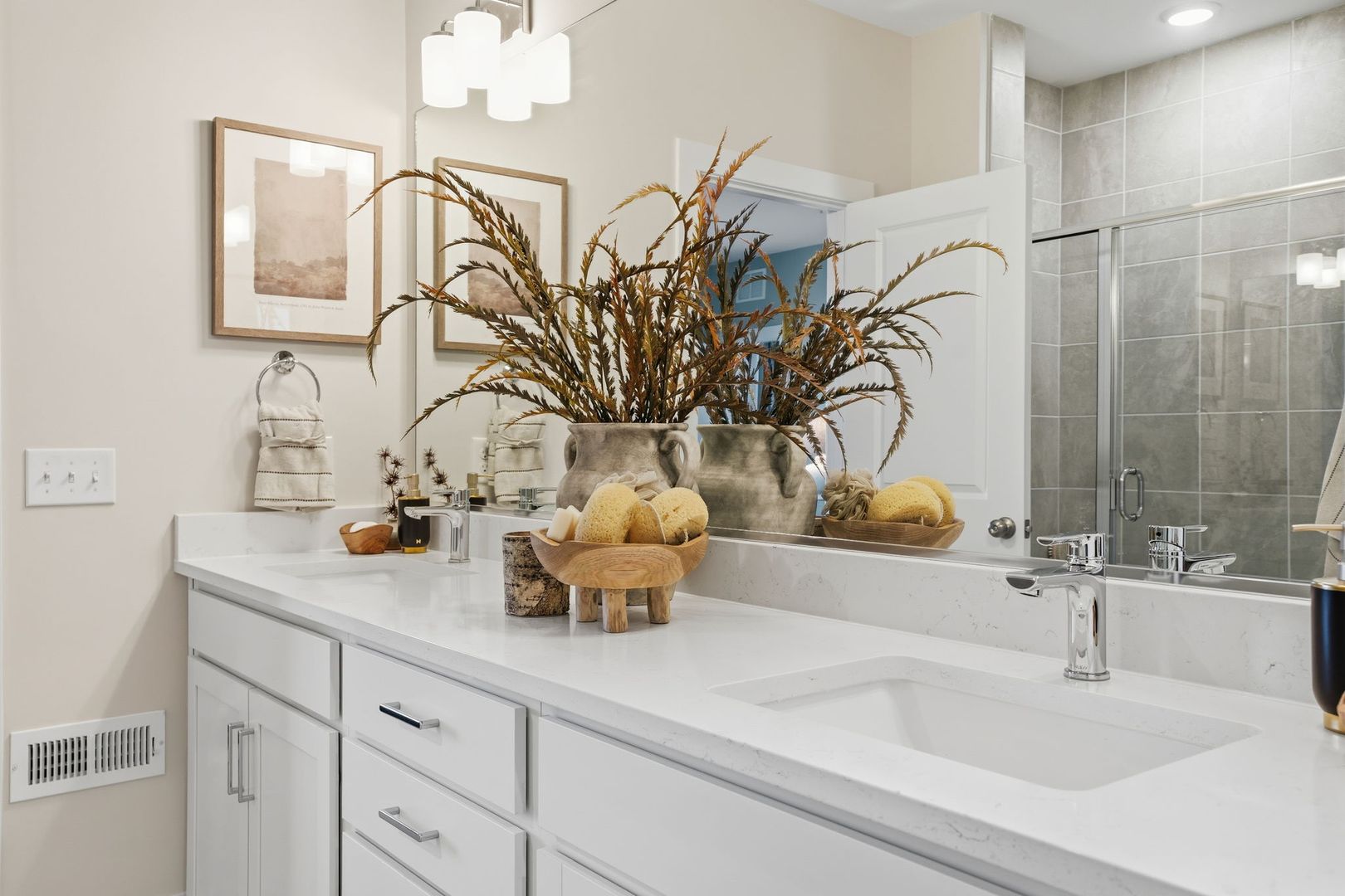 Upstairs, you’ll find three bedrooms, including a spacious primary suite and two additional well-sized bedrooms perfect for guests, a home office, or flex space. The second level also provides access to a private balcony off the third bedroom, offering a quiet outdoor retreat just off the upper living spaces.