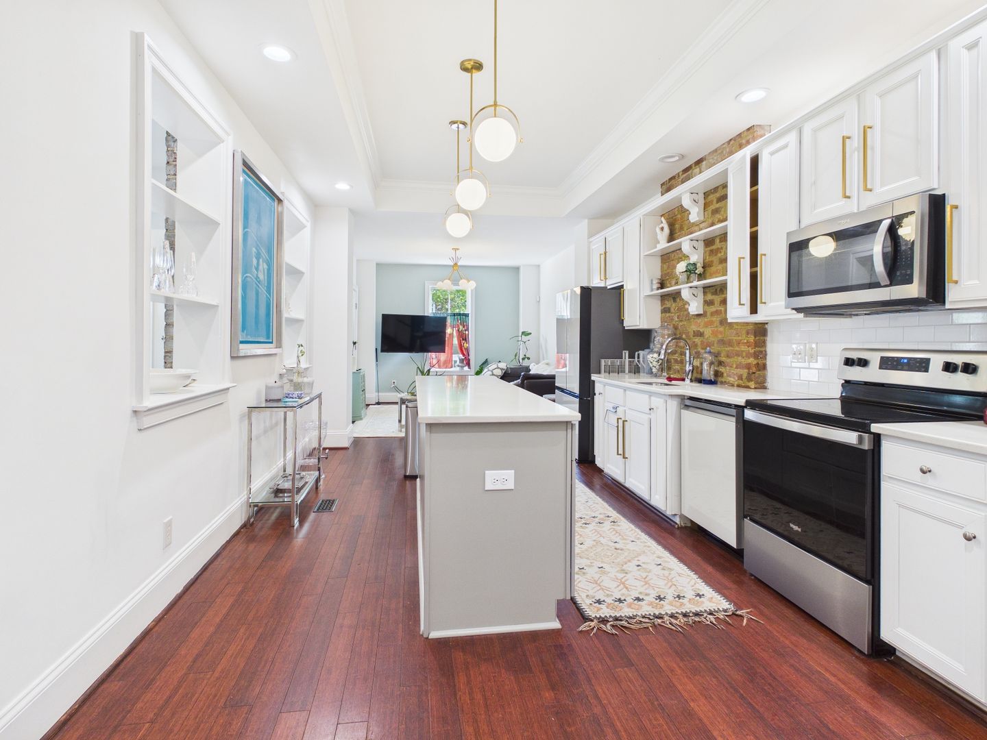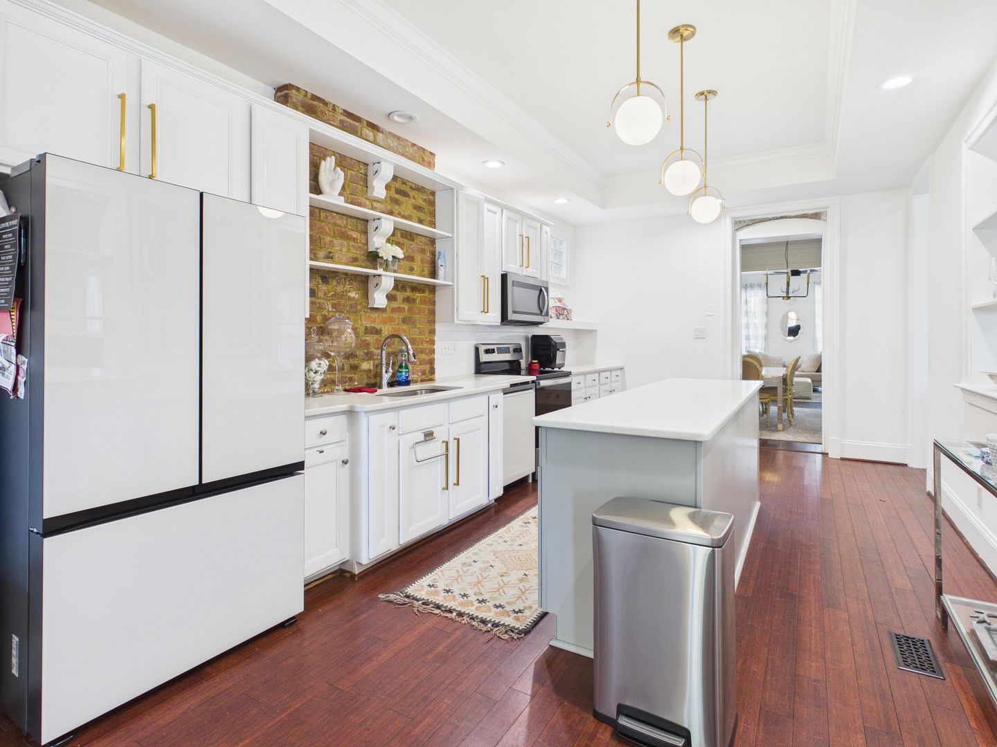 Step inside to find beautiful hardwood floors throughout the main living areas, with plush carpet in the bedrooms for added warmth. The spacious kitchen is a chef’s dream, featuring a large island, updated appliances, and ample counter space for meal prep and entertaining. The open-concept design flows seamlessly into the living and dining areas, creating a welcoming atmosphere.