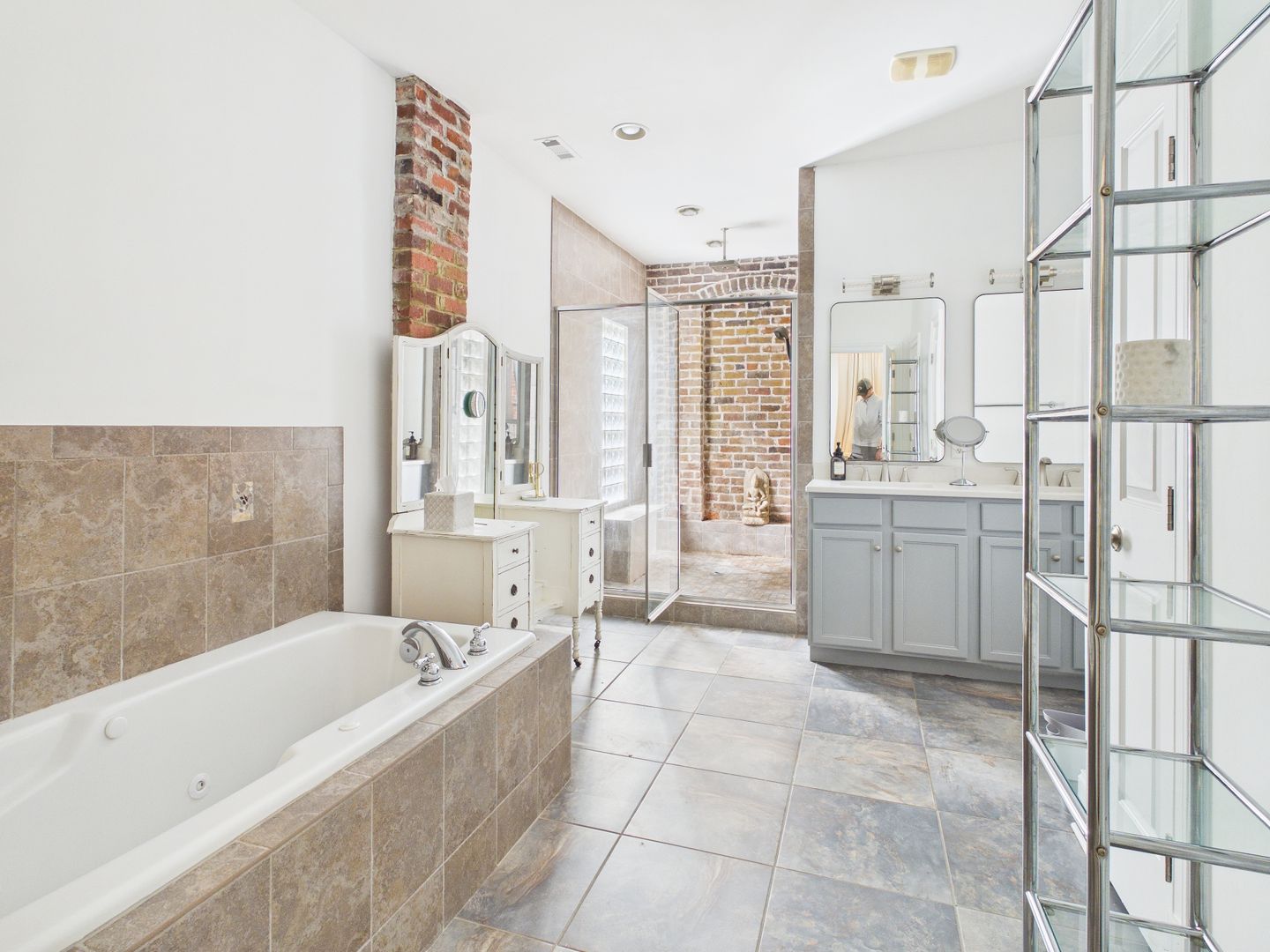 The master suite is truly a retreat, boasting an oversized bedroom and a luxurious en-suite bathroom with dual sinks, a walk-in shower, and a large garden tub perfect for unwinding. The additional bedrooms are generously sized, and the bathrooms have been upgraded with stylish fixtures.