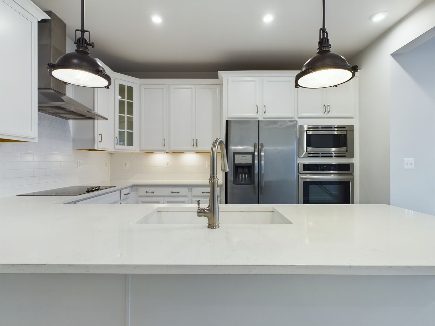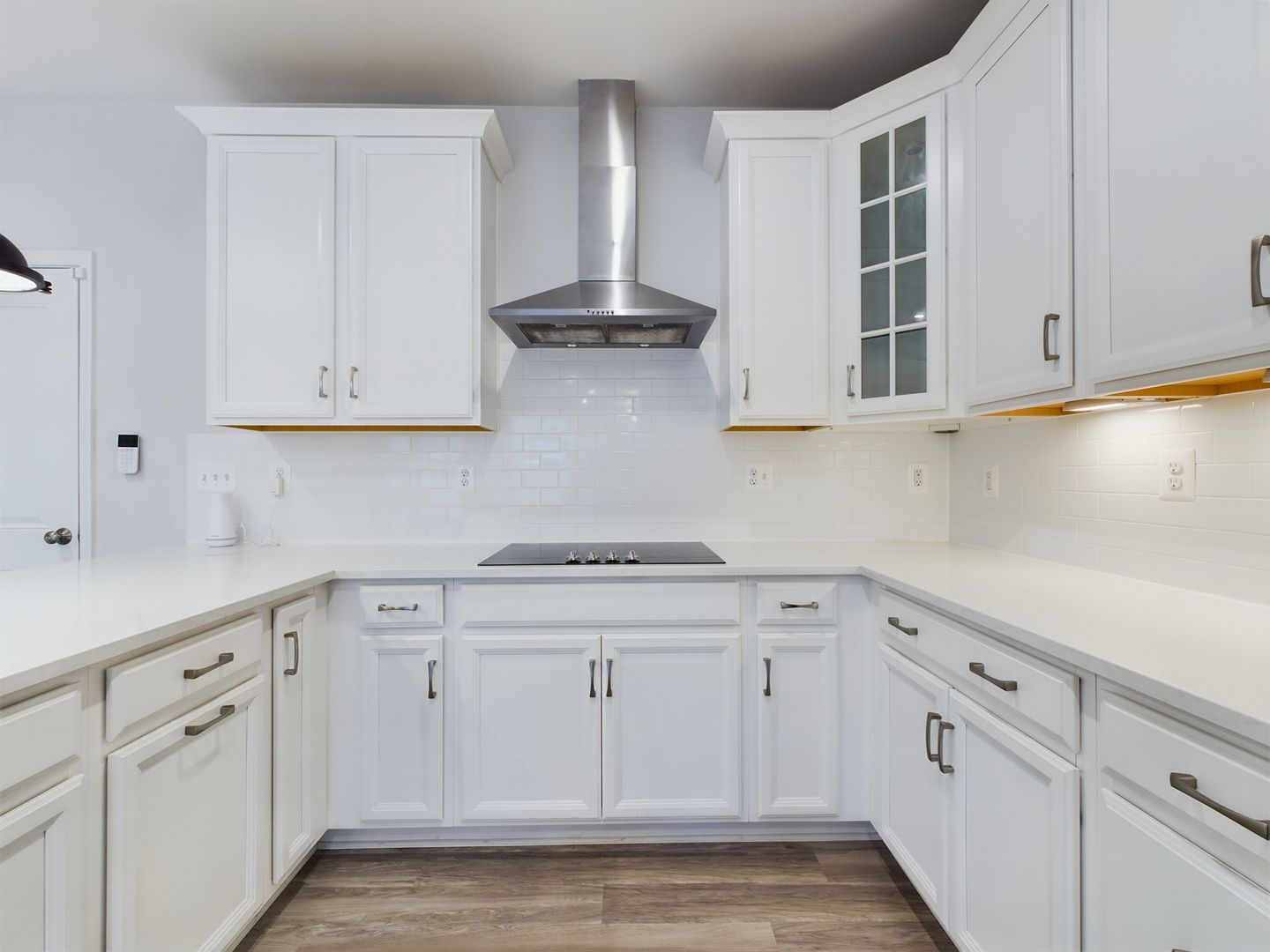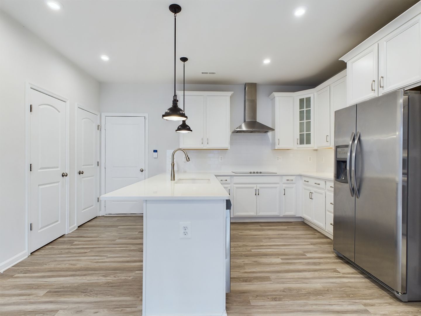 Step inside from the front door or attached garage to plenty of natural light and luxury vinyl plank flooring throughout. Open floorplan from the living room flows to the kitchen completed with granite countertops, stainless steel appliances including in wall oven and microwave, tons of cabinet space, breakfast bar, large panty, wonderful backsplash, recessed lighting and more. Half bathroom off of the living room.
