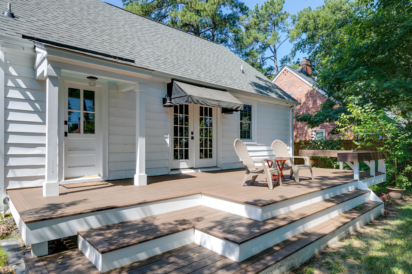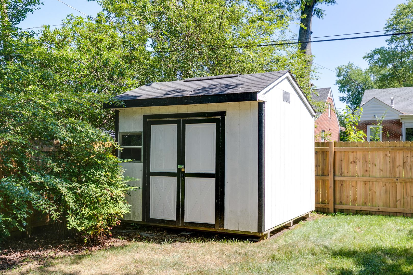 Outside, relax or entertain on the terraced deck overlooking the fenced-in yard, complete with a storage shed.