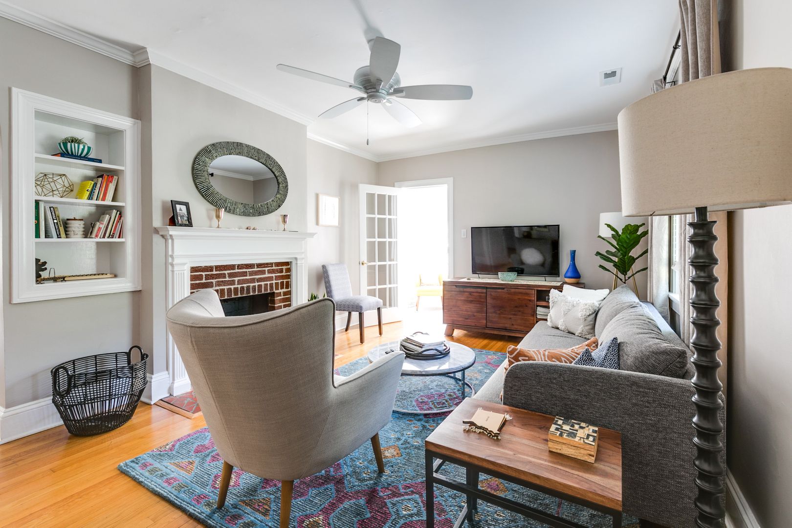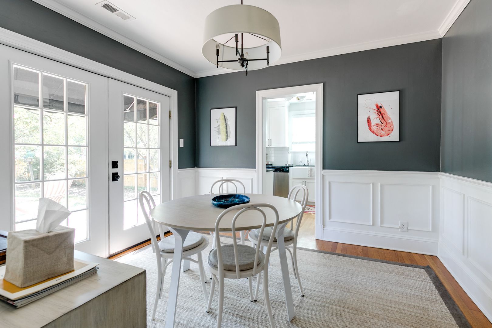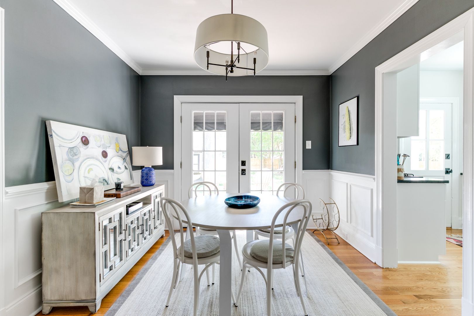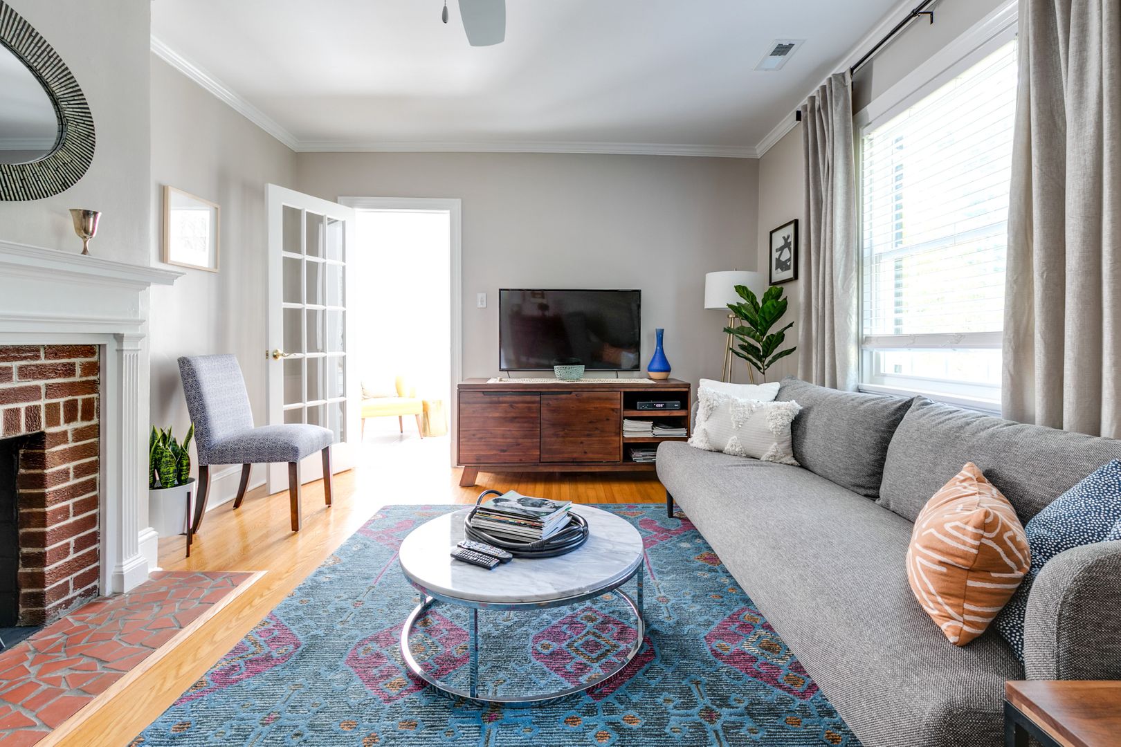 Step inside to find bright, open living spaces filled with natural light. The spacious living room flows into a bonus side room—perfect for a home office, playroom, or workout space. A formal dining room with French doors and chair molding leads to the updated kitchen, featuring granite countertops, a farmhouse sink, stainless steel appliances, and ample cabinetry. A laundry and utility room with washer and dryer is also included.