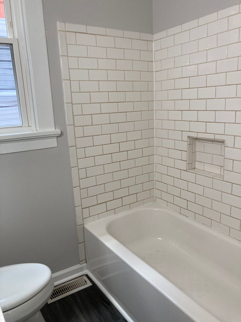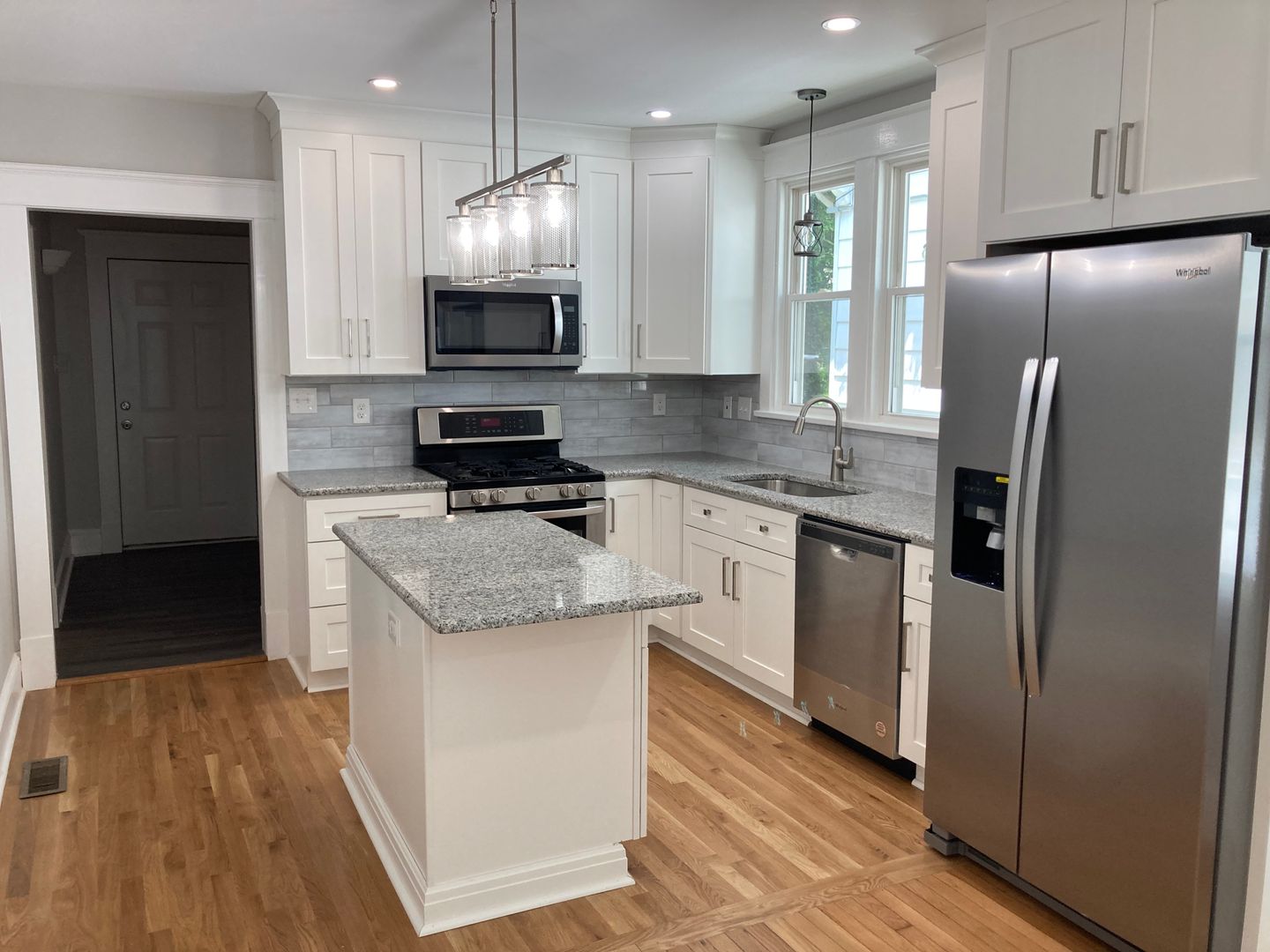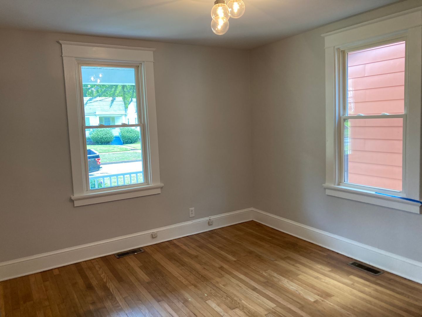 Headed through the kitchen in to the main hallway you will first come to your completed renovated full bath with tile shower. On either side of the bathroom are two large bedrooms with newly refinished hardwood flooring, overhead lighting and large closets. On the back side of the house you will find the third bedroom which offers some seclusion or could be used as a home office!
