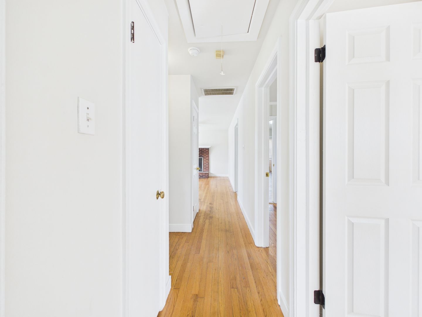 Down the hall, you’ll find three generously sized bedrooms and a full bathroom, all complemented by beautiful original hardwood floors throughout.