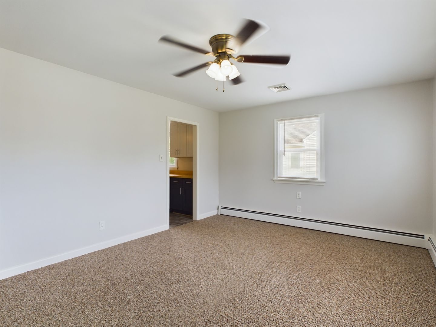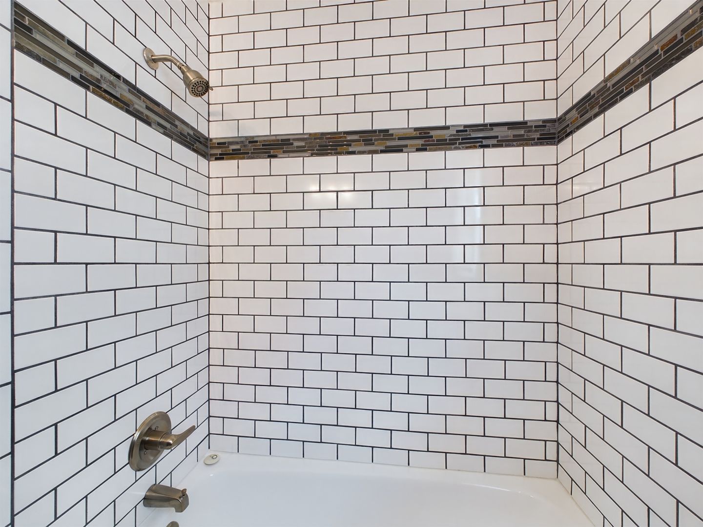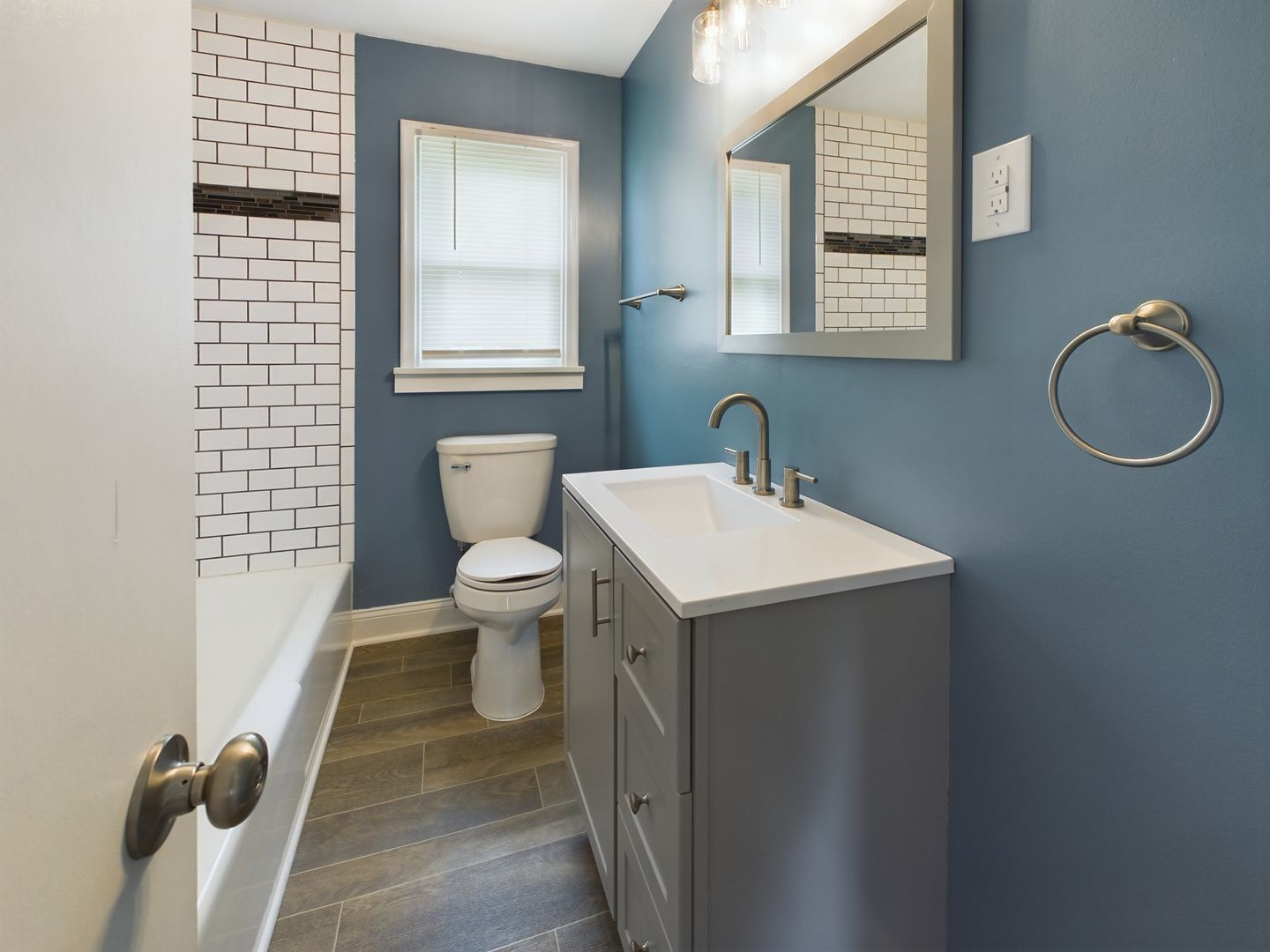 Heading back through the kitchen and living room you enter the main hallway. Hallway hosts the fully renovated bathroom with tub shower, subway tile and all new fixtures. Additionally there are two large bedrooms and a smaller room that passes through to the kitchen as well. All bedrooms have hardwood flooring throughout, overhead lighting and fans as well as good size closets.
