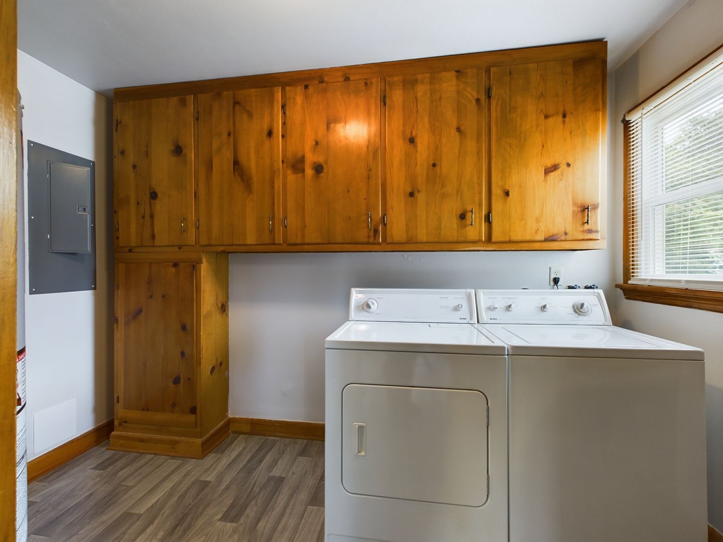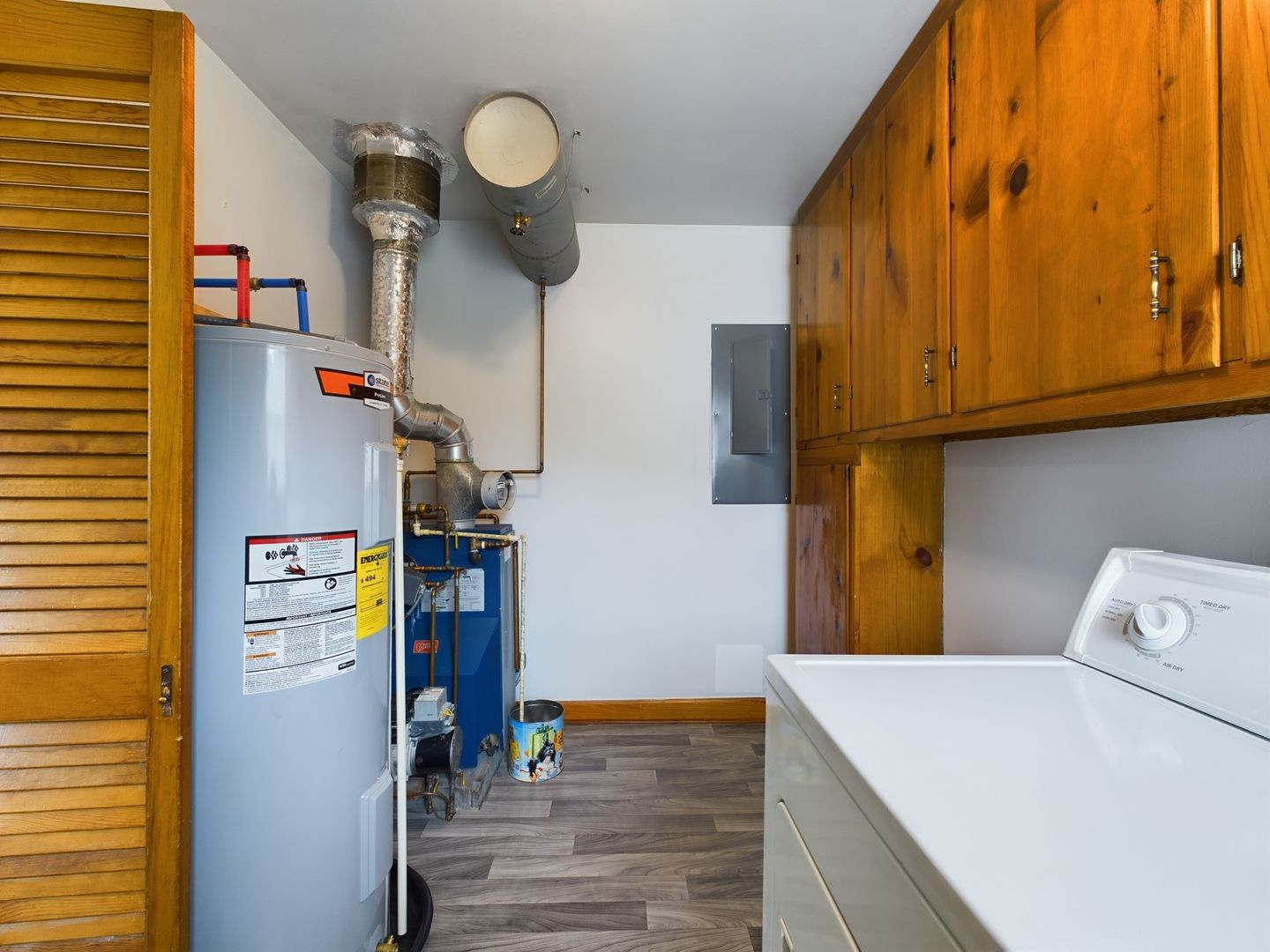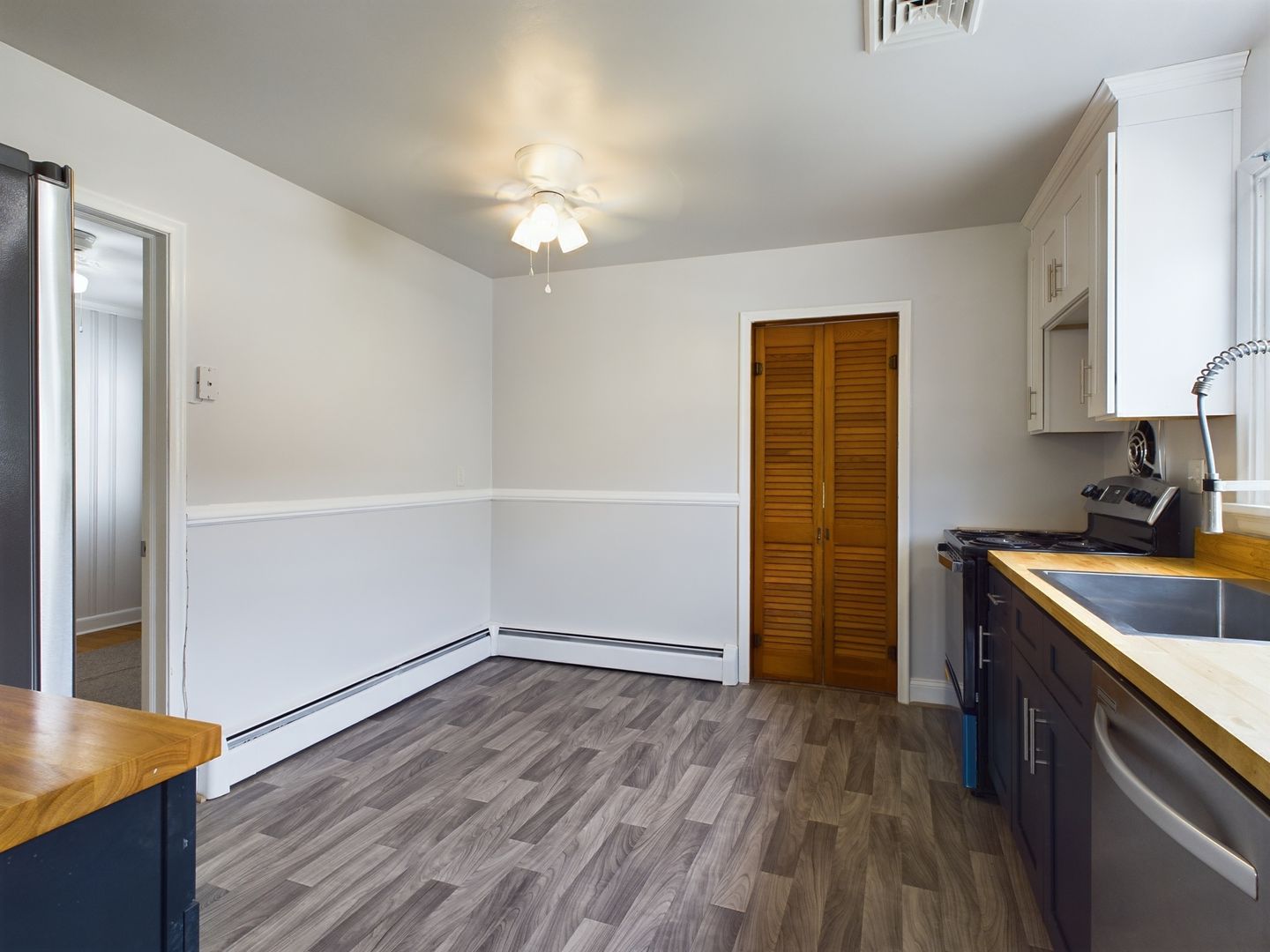 Stepping in the front door you enter to your main living area filled with natural light from the large front window. The living area opens to the eat-in kitchen with brand new cabinets and countertops as well as all appliances. Plenty of room for a table and chairs or additional kitchen storage. Off the kitchen is the utility room with washer and dryer to convey with home and more storage room.