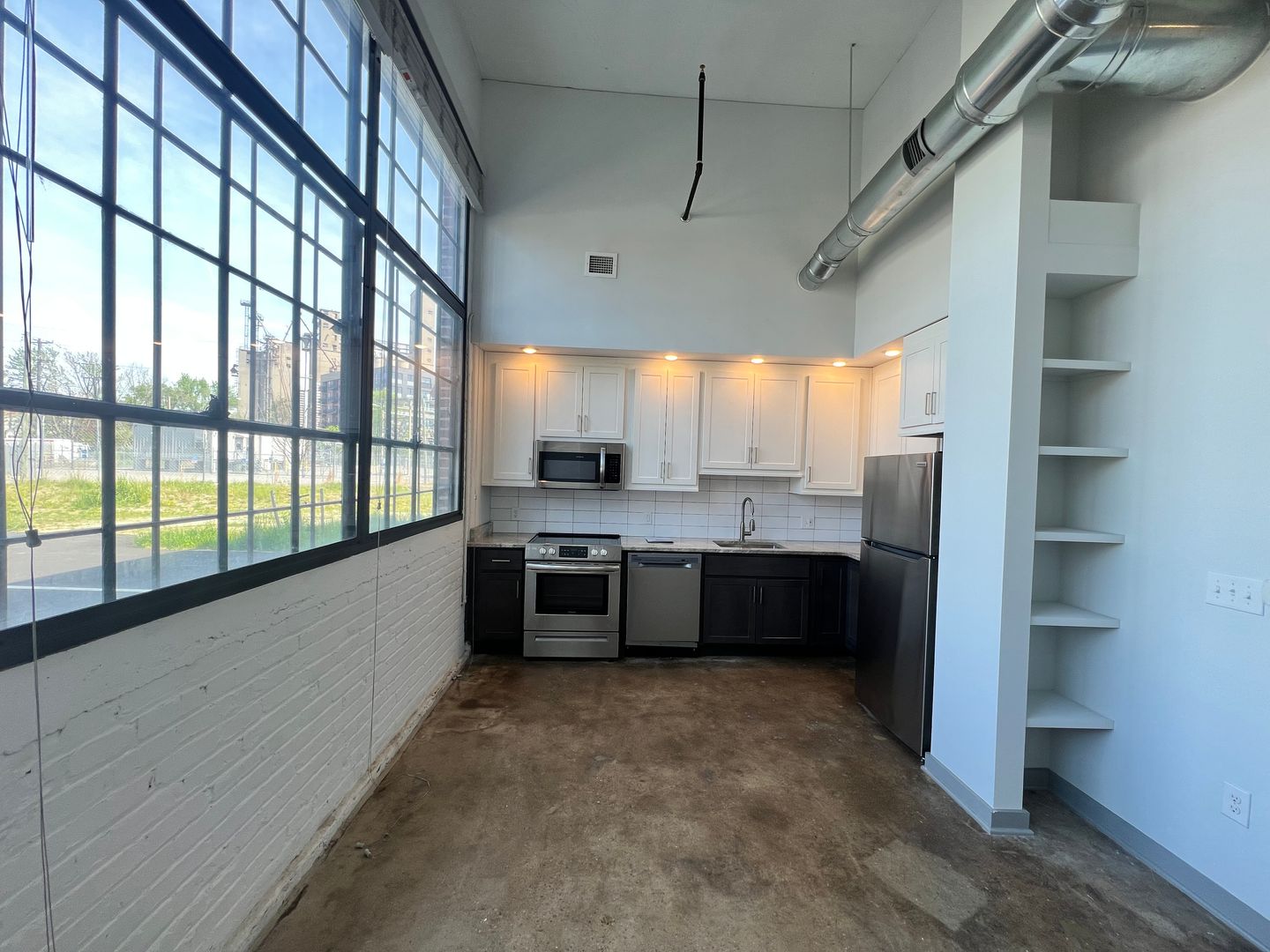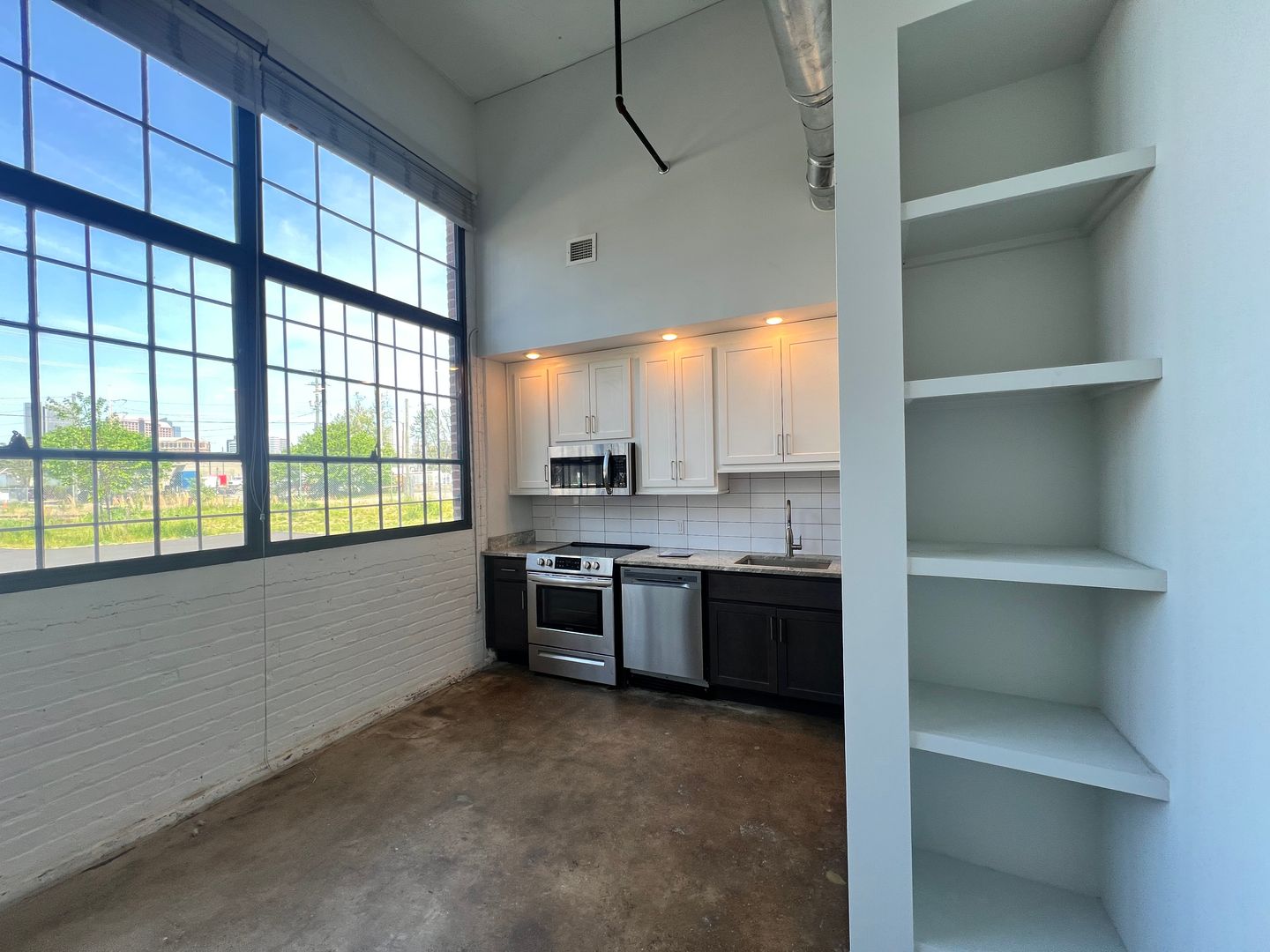 Industrial apartment living flats with luxury, modern design and finishes showing off the preserved historic character of the “Roaring Twenties” property. Mixed, well designed one- and two-bedroom open floorplans with towering ceiling heights. Polished concrete floors throughout, designer kitchens with an island, quartz countertops, tile backsplash, two-toned cabinets, energy-efficient stainless steel appliances including refrigerator, dishwasher, microwave, and oven/stove as well as in unit washer and dryer. Complete central air and all that you would expect from brand new construction.
