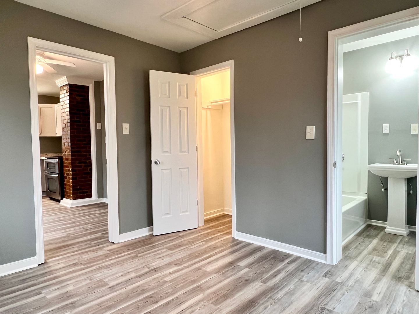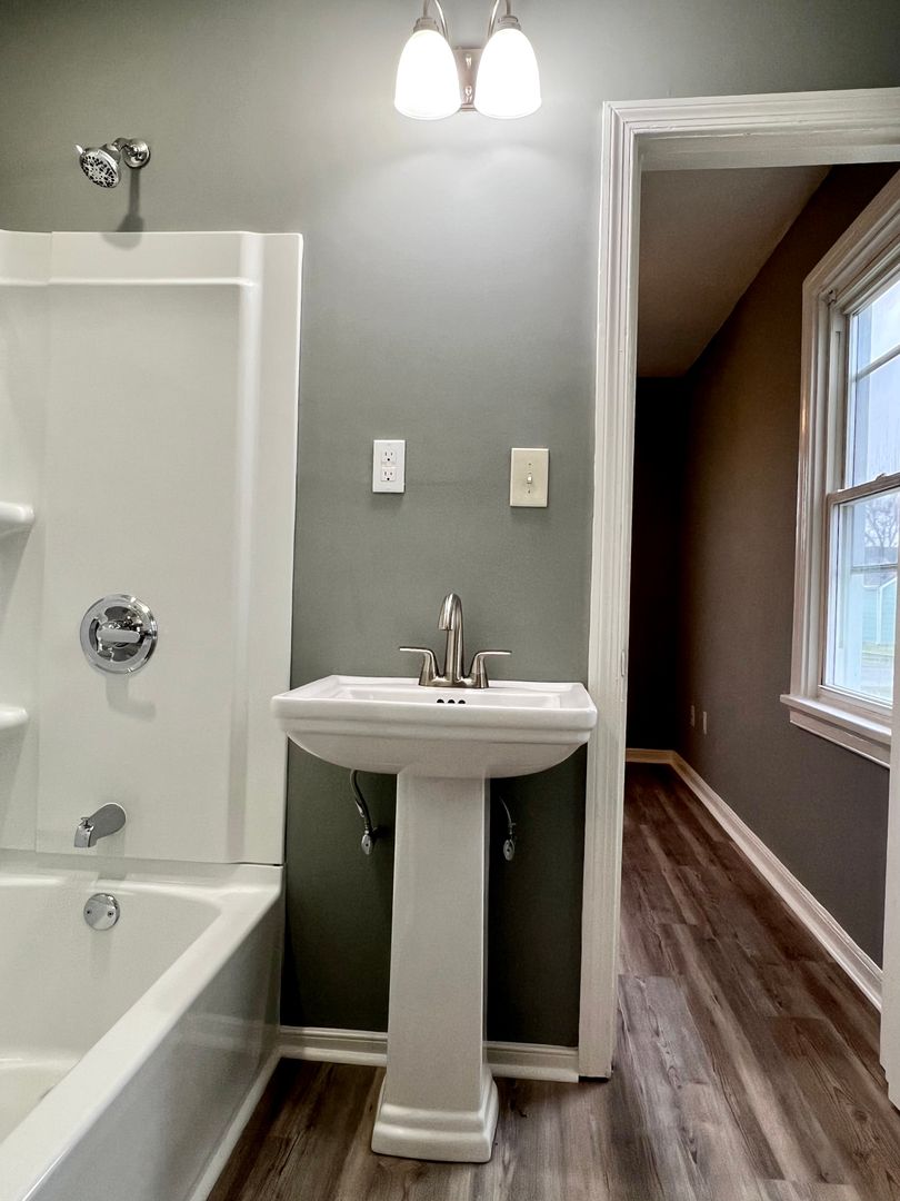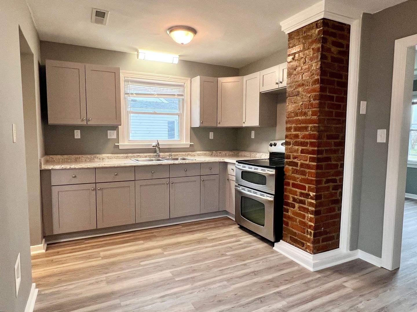This home offers ample parking in the front driveway. Head into the house from the covered front porch and step into the main living area. Moving through the living room you will enter into the eat-in kitchen with new cabinets and stainless appliances. Off the kitchen and living room are two bedrooms. Full bathroom accessible through each of the bedrooms with full size tub. Heading back through the kitchen towards the back door you will pass through the laundry and utility area.
