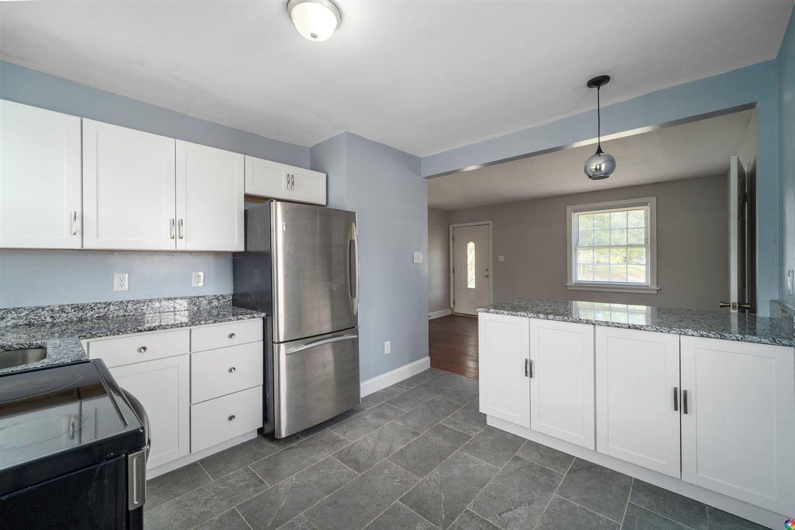 Step inside to hardwood floors, plenty of natural light and more. Nice living room opens up to the updated kitchen complete with stainless steel appliances, granite countertops, breakfast bar and plenty of cabinet space.