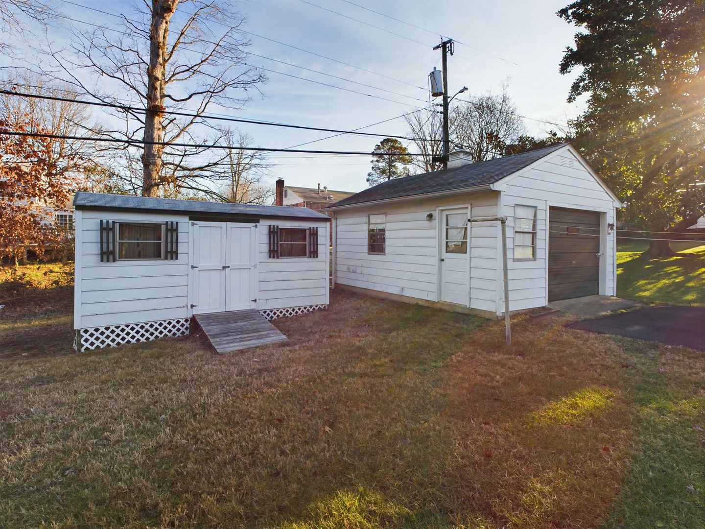 The large backyard offers even more storage and functionality, complete with a one-car garage and an oversized shed.