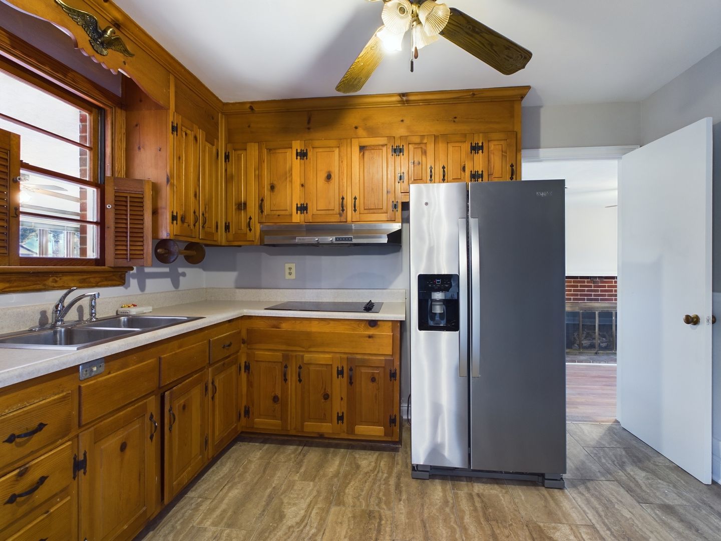 As you arrive, you’ll appreciate the long driveway with a garage and additional carport parking. Mature trees provide shade and great curb appeal, welcoming you inside to newly refinished hardwood floors.